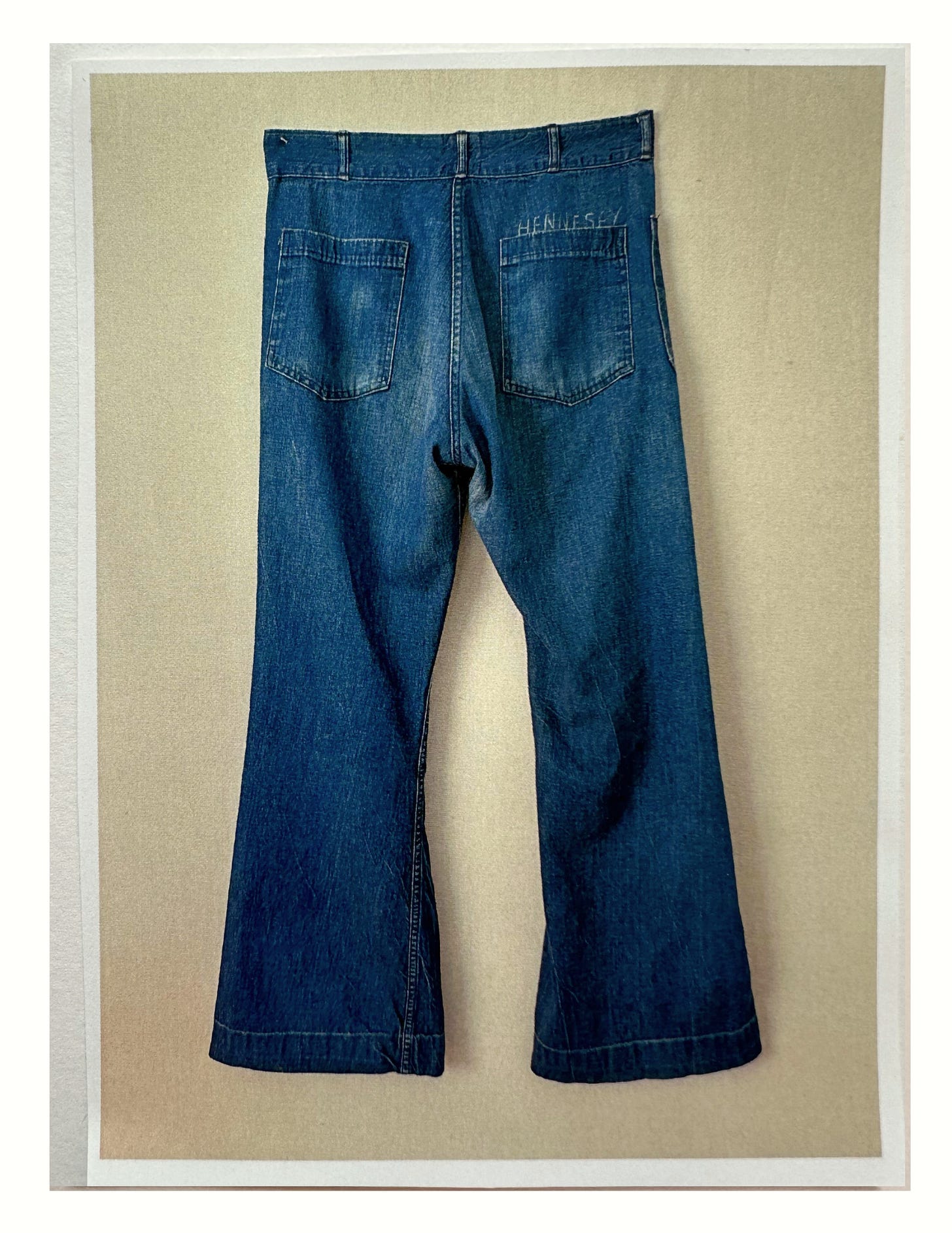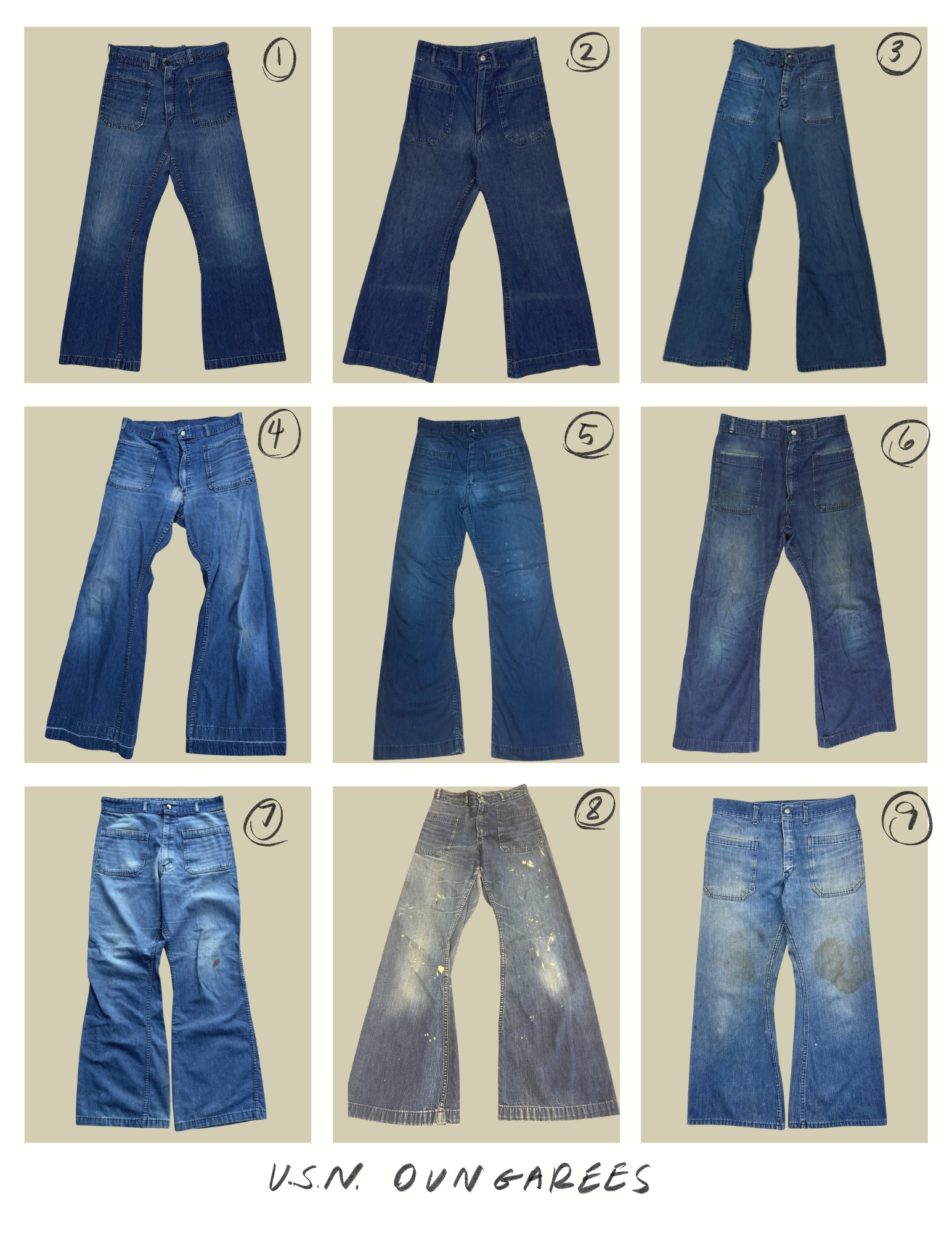 The silhouette of USN dungarees was cut with intention- the bell shape at the opening of the jean allows for the sailor to easily roll up his jean above his knees when he was cleaning the deck of the ship (brilliant!). This silhouette also happens to be flattering on just about every body type adding to the allure of the style.