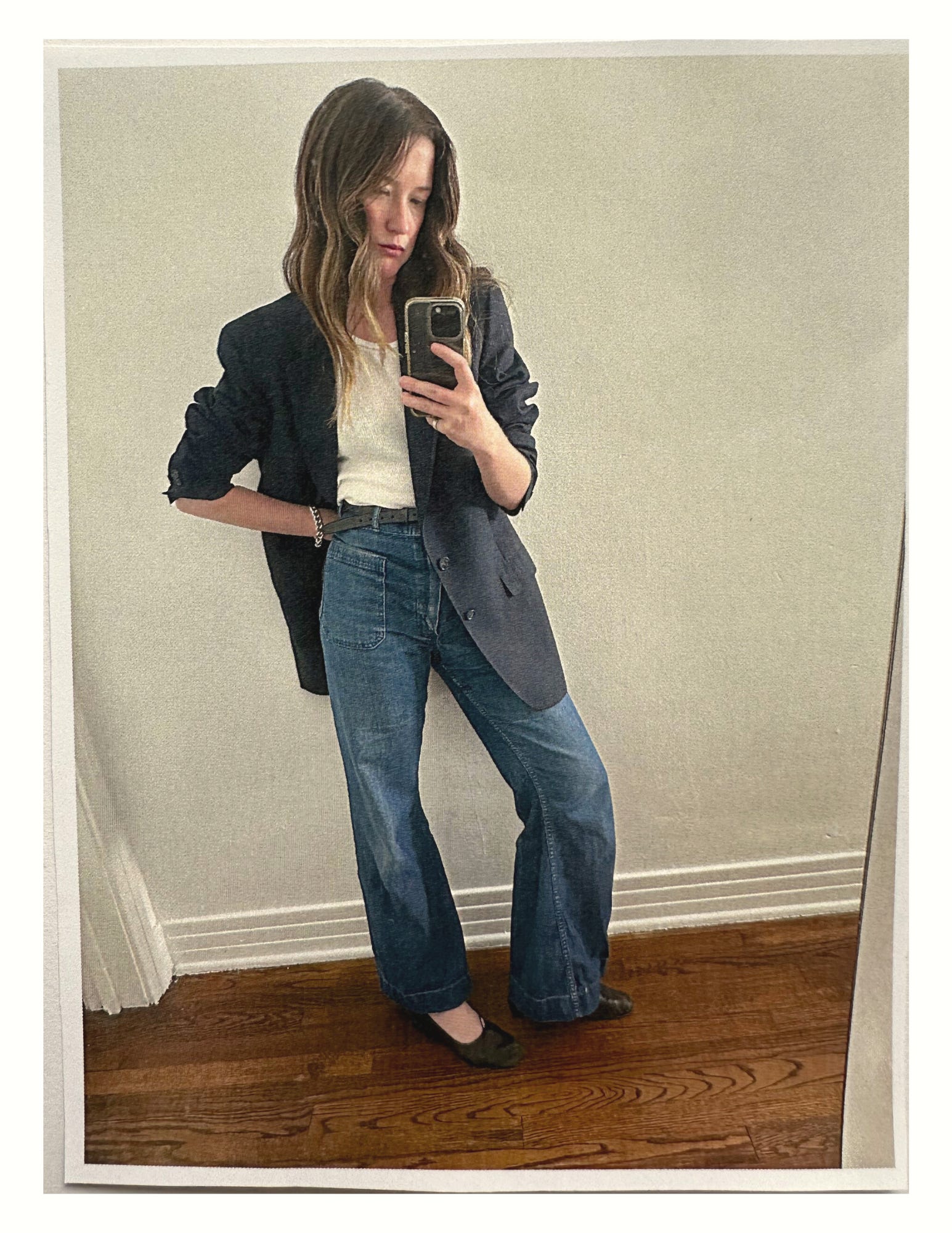 The jean I’m talking about has been in production since the early 1900s and was originally made for the U.S. Navy. The style is cut more like a trouser, in drapey, lightweight denim which means they are not only one of the most comfortable jeans to wear, but also one of the most flattering- which is exactly why they’ve become my holy grail.