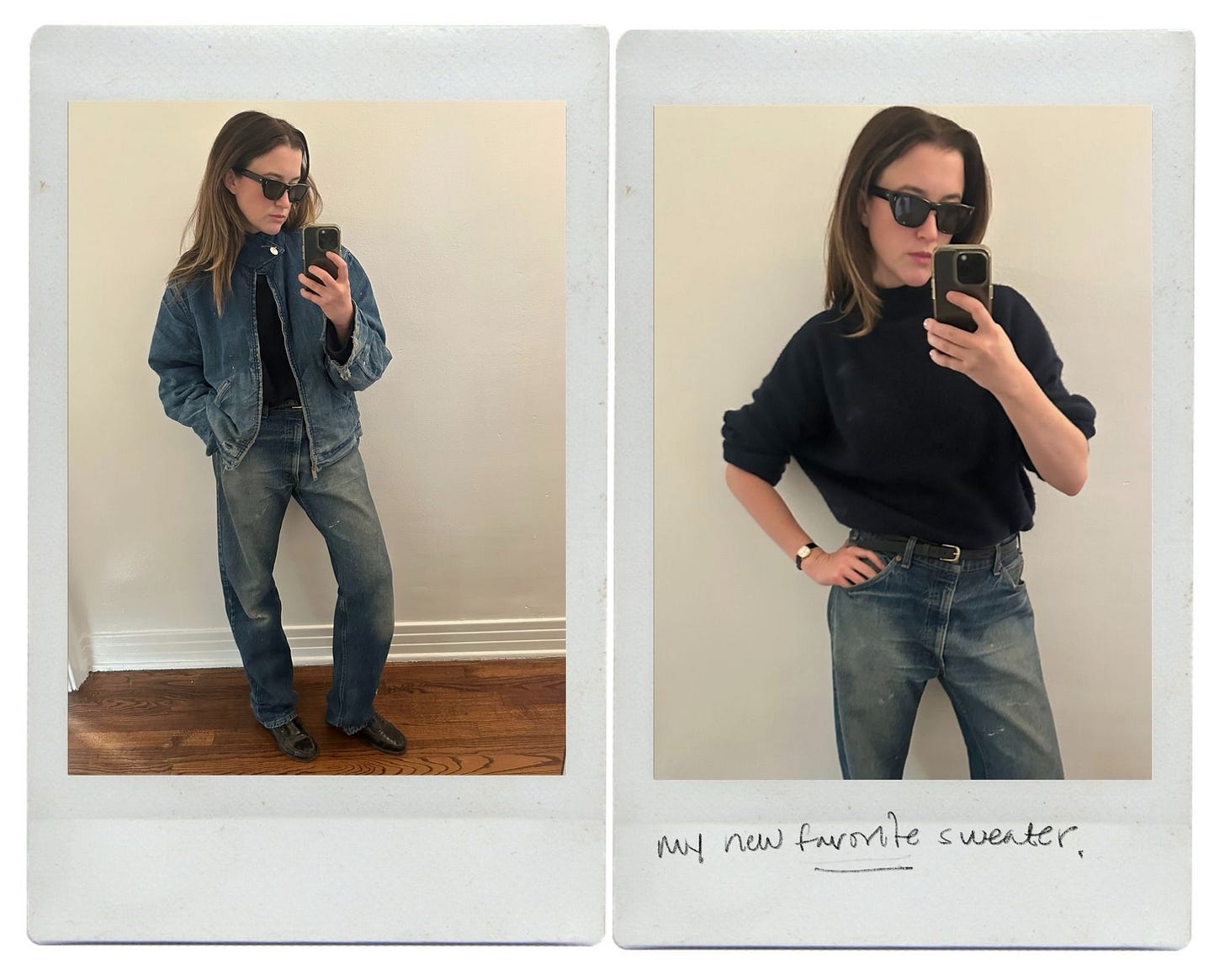 This winter in California, the jacket I keep reaching for is my vintage denim blanket-lined, full zip jacket. It’s become my default outer layer. I love it because it is the most perfect solution of how to wear my go to uniform on colder days. It looks as good layered with a sweater (like my new favorite navy cashmere mock neck) as it does with a good long sleeve tee for not so cold days.